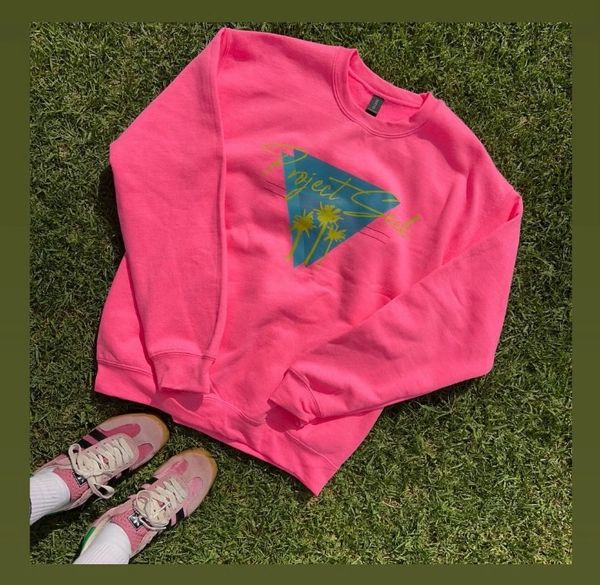 Stay cozy and bold in our bright pink Project Seek sweatshirt — featuring a retro triangle design with palm trees that bring SoCal vibes wherever you go. Perfect for cool evenings and casual days. Rep Project SEEK in comfort. Don’t miss out — they are going fast!